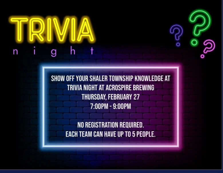 Shaler Trivia Night Thursday, February 27, 2025 7:00 PM 9:00 PM 19:00 21:00 Acrospire Brewing Company 1702 Mt Royal Blvd Glenshaw, PA, 15116 United States (map) Google Calendar ICS